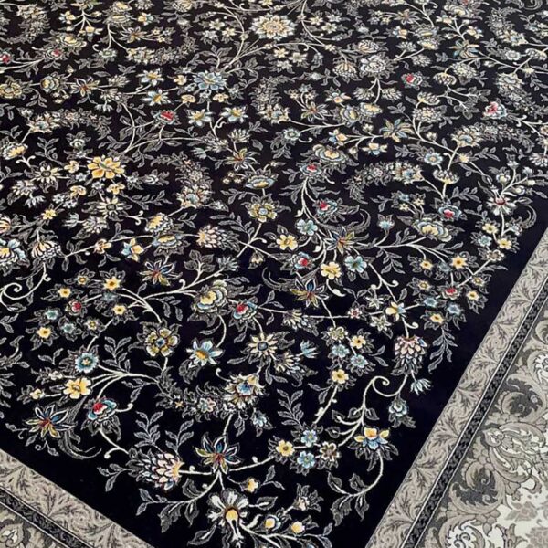 طرح بهار سرمه ای فرش 1500 شانه تراکم 4500 برجسته