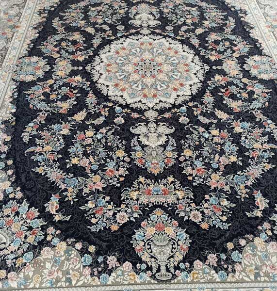 طرح صاحبقران سرمه ای فرش 1500 شانه تراکم 4500 برجسته